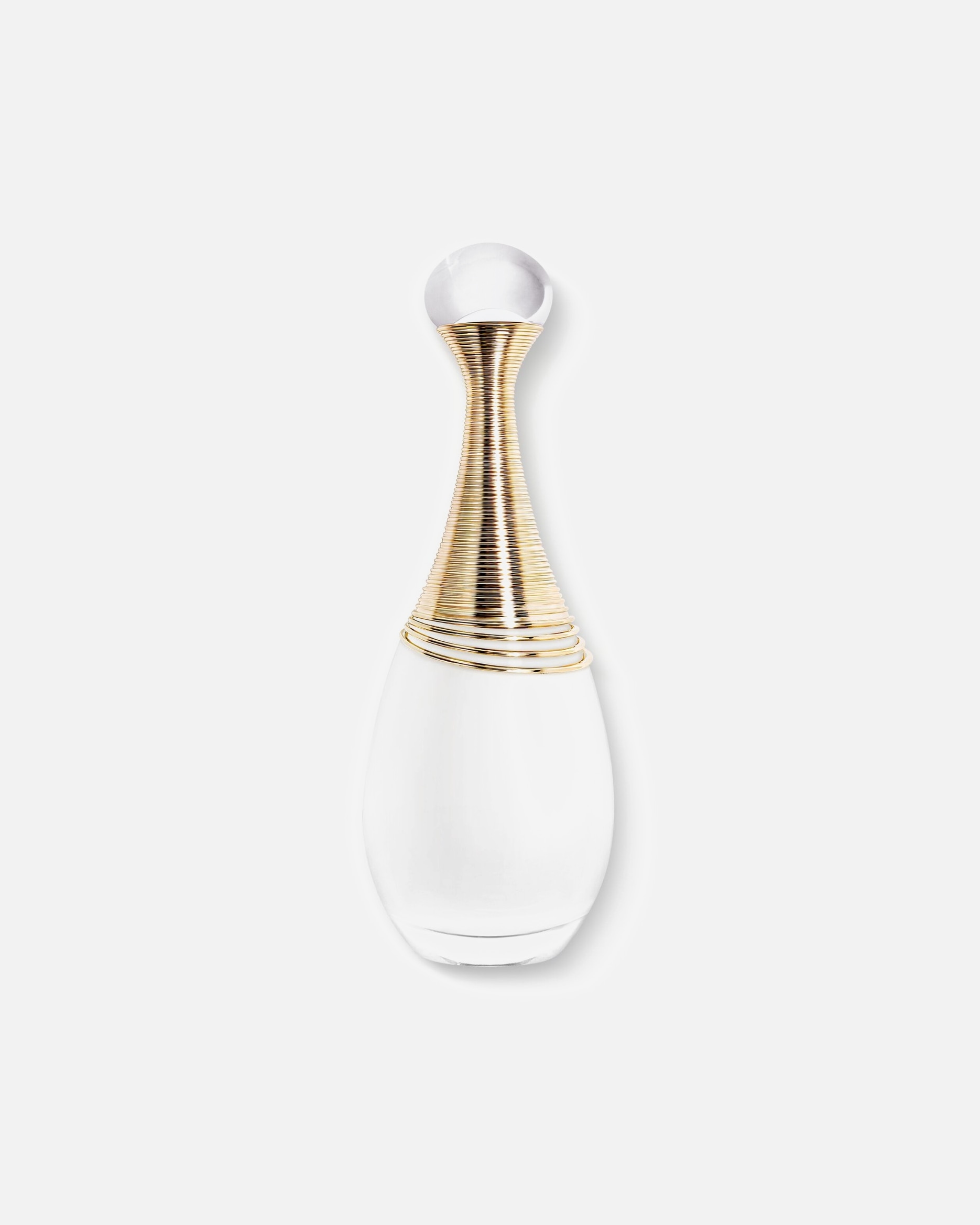 Kvepalų buteliukas yra kvadratinis, pagamintas iš skaidraus violetinio stiklo, su briaunotu kamšteliu ir papuoštas mažomis rožinėmis gėlėmis prie pagrindo.